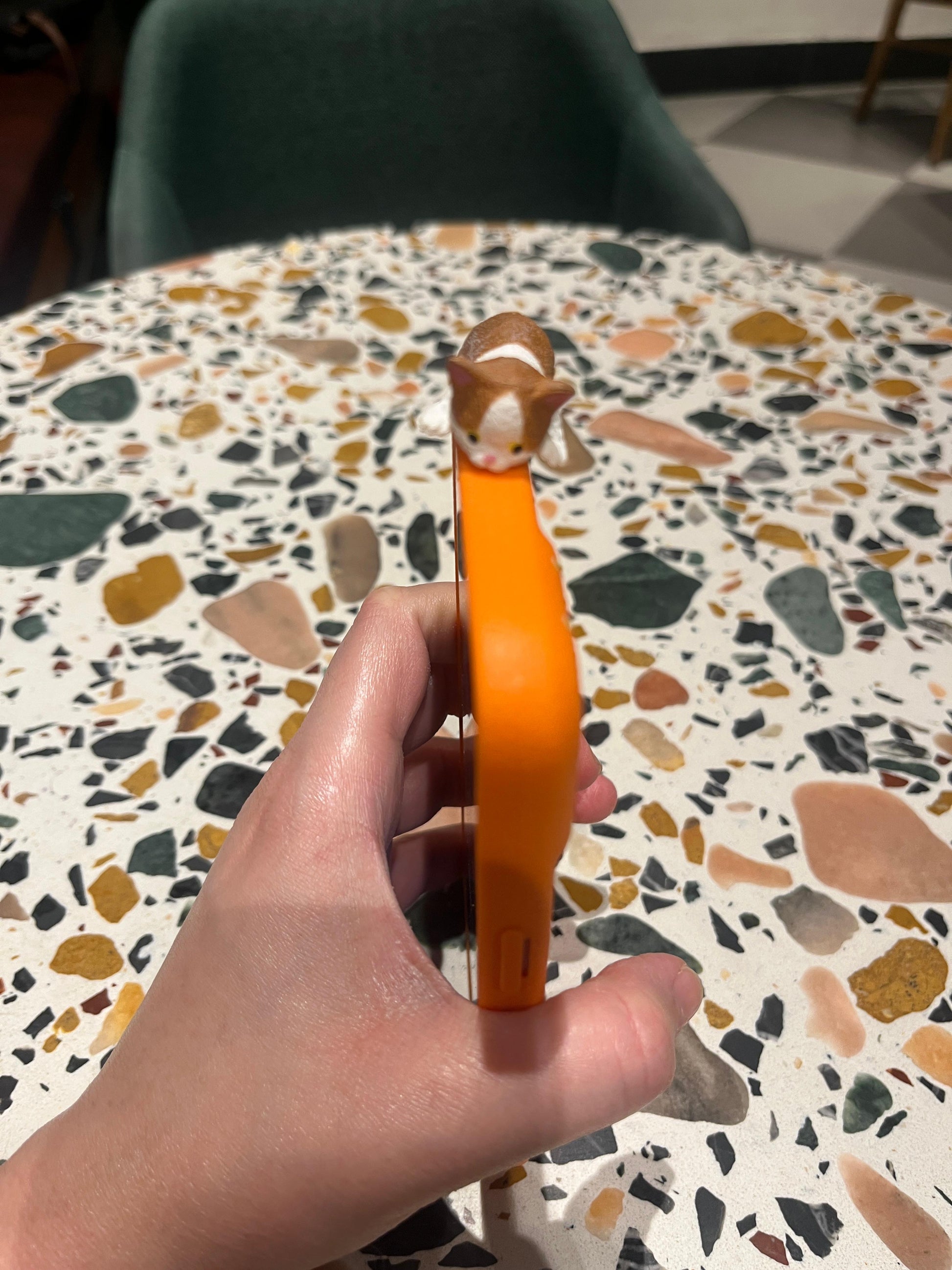Vibrant Orange Polka Dot iPhone Case with 3D Calico Cat & Yellow Chick Charm